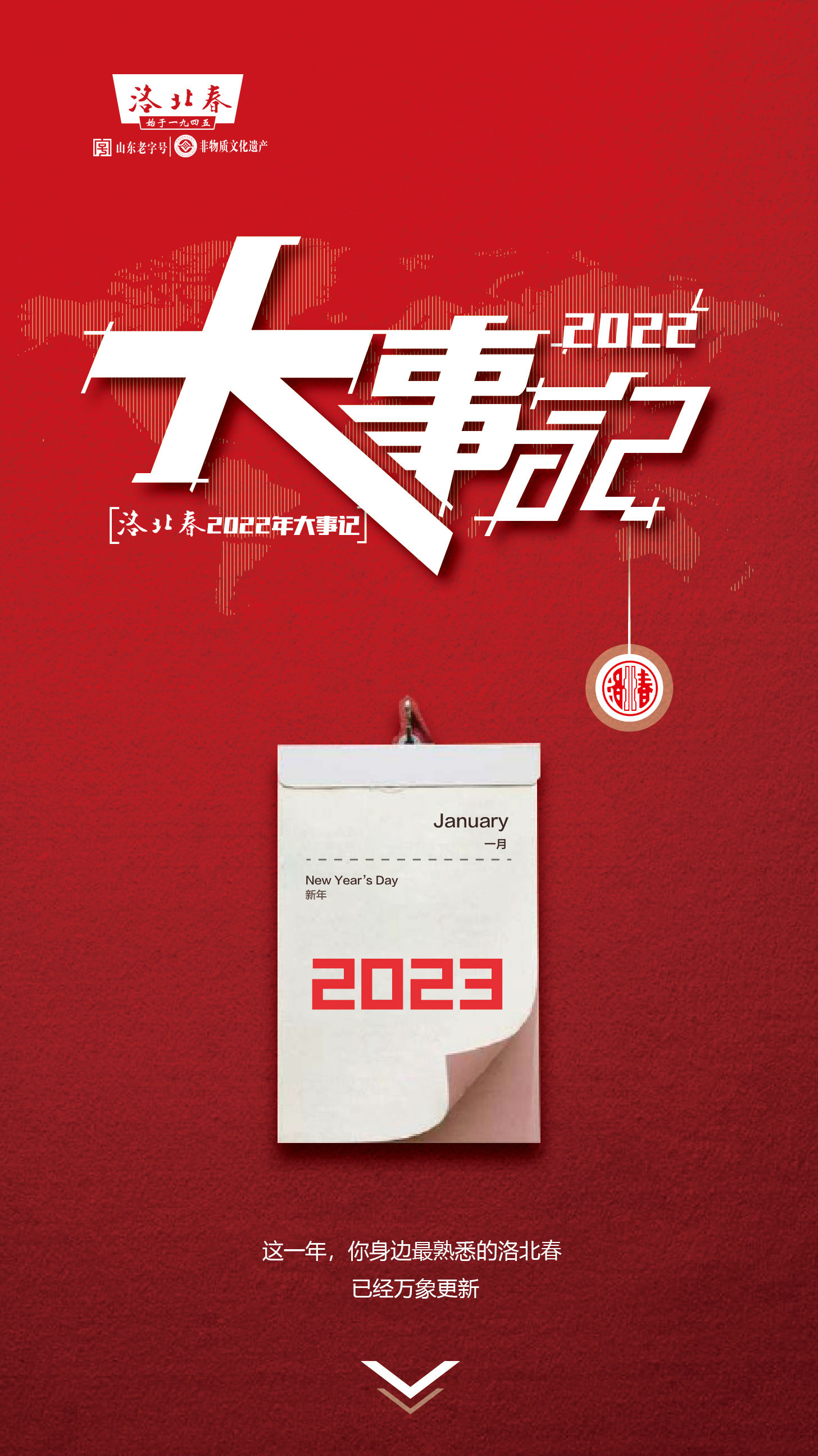 2022年,是極其不平凡的一年,所有洛北春人敢拼敢為、刻苦努力、奮勇前進,受到合作伙伴、消費者的一致好評,特別是在今年成功舉辦“齊魯酒文化峰會”,參加“上海進博會”等,成功展示了洛北春的品牌形象,與世界共享新機遇,有力推動了洛北春更快、更好的市場拓展。過去的一年,注定是高速積累的一年,注定是具有里程碑意義的一年。