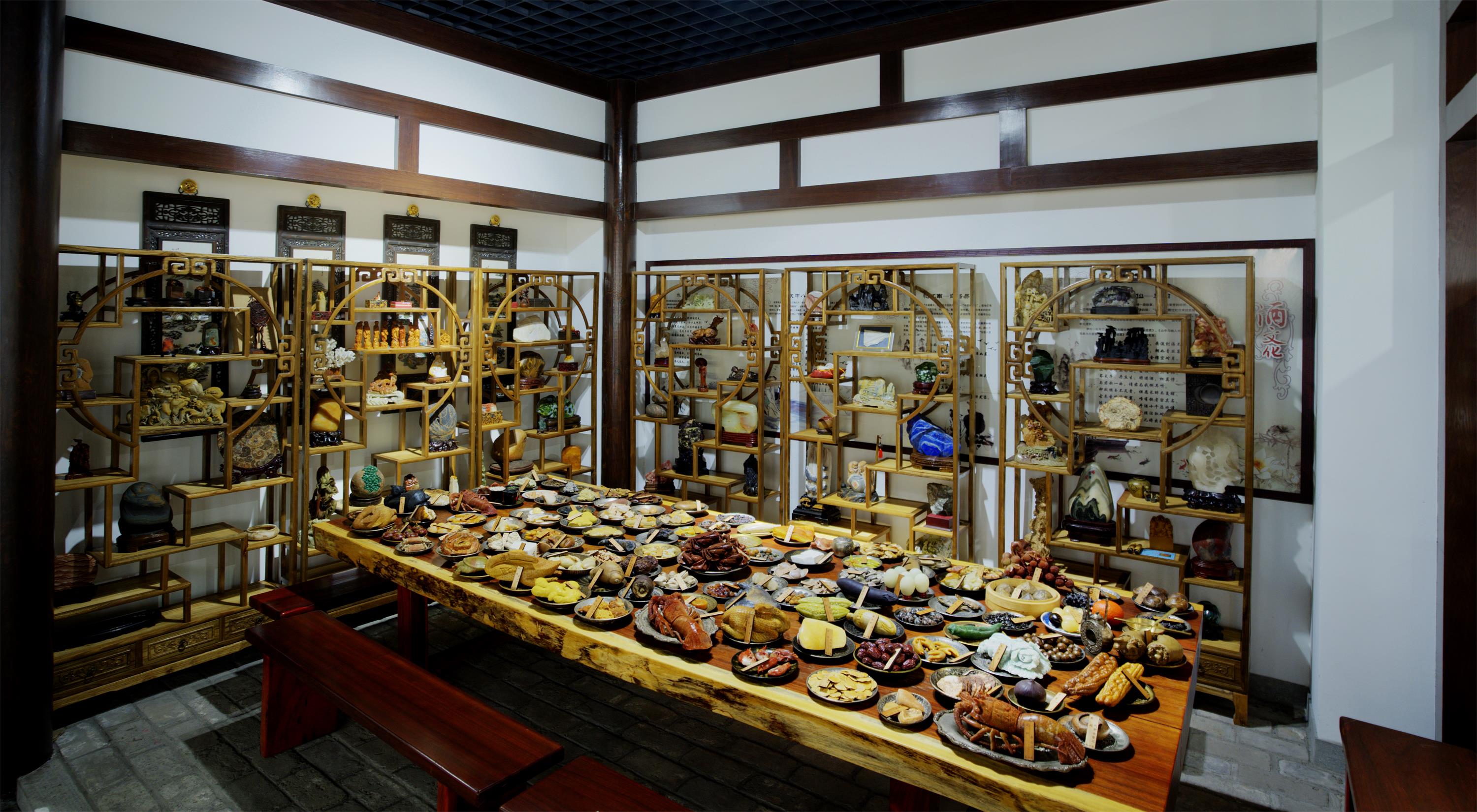 “滿漢全席”由洛北春集團老董事長趙海山先生從上世紀九十年代開始,在全世界各古玩市場、奇石市場精淘匯聚一齊。天然化石、玉石、經(jīng)過大自然的鬼斧神工,時間的自然沉淀,中華飲食文化之淵源,瓔瑯萬物之靈氣盡顯于此?!皾M漢全席”所用擺盤為純銅、純銀古器,精美花紋,參錯其間,更覺生色,延典雅之逸風?!皾M漢全席”與洛北春酒融為一體,方為真盛宴。